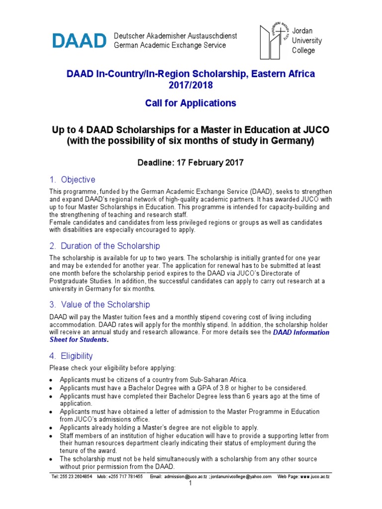 Daad Scholarships Juco Postgraduate Education Academic Degree