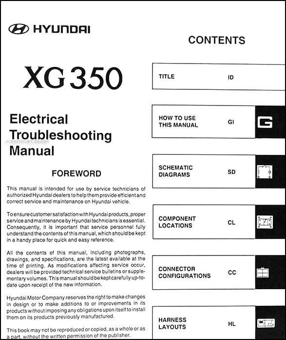 2004 hyundai xg 350 original electrical troubleshooting manual. Table of contents. 2002-2003 hyundai xg 350 original electrical troubleshooting manual. Hyundai environment service puc wash dry offers